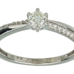 Anillo Solitario con Centro 0.20 Quilates y Montadura 0.12 Quilates de Diamante en ORO BLANCO de 14 kt