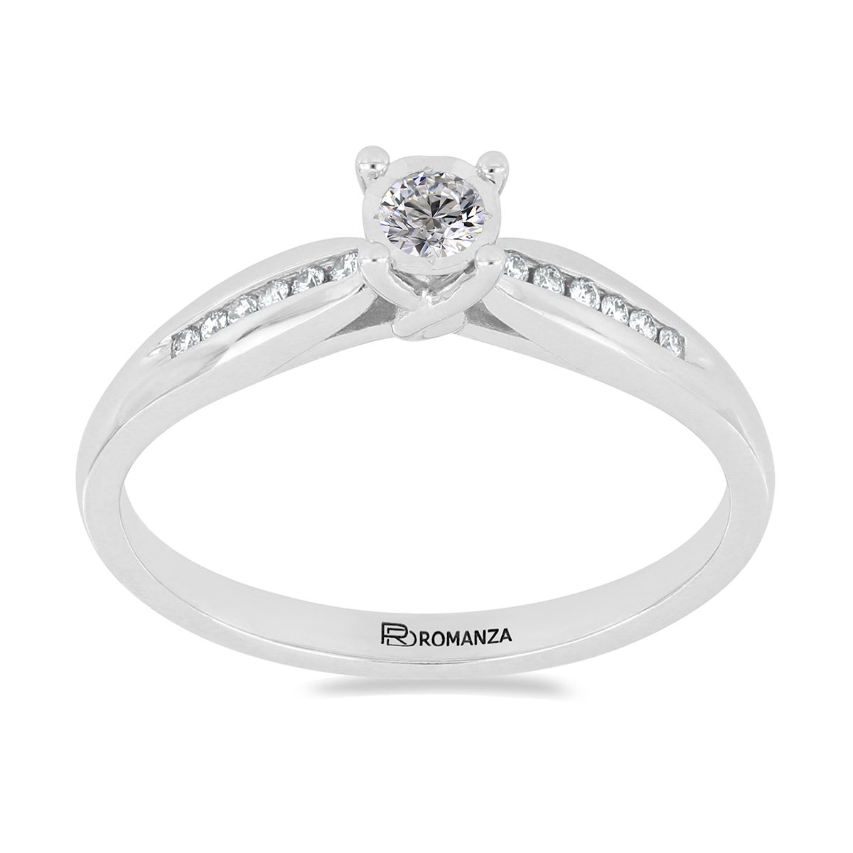 Anillo Solitario Ilusión con Montadura 0.15 Quilates de Diamante en Oro Blanco de 14 kt