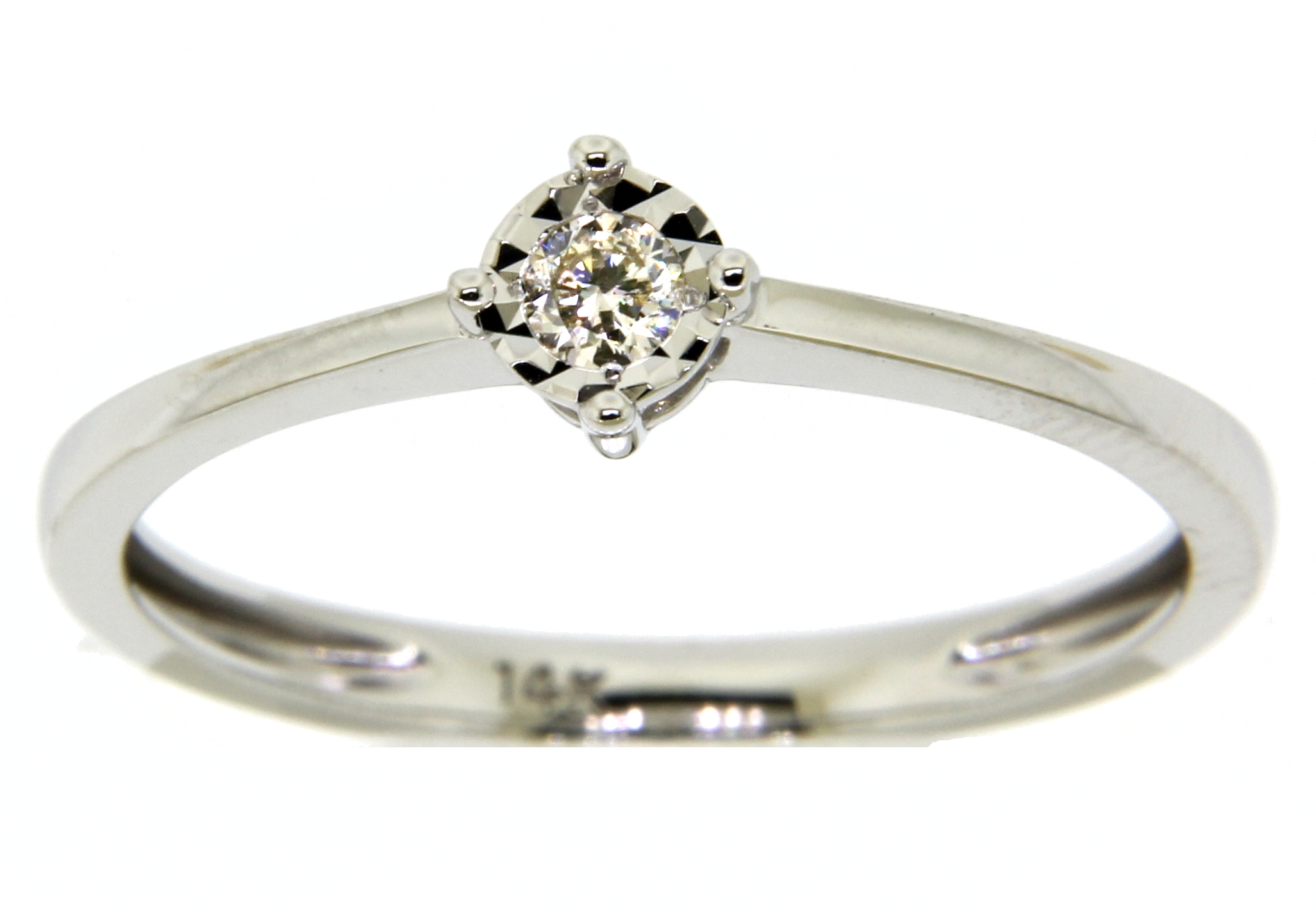 Anillo Solitario Ilusión con Centro 0.06 Quilates de Diamante en Oro Blanco de 14 kt