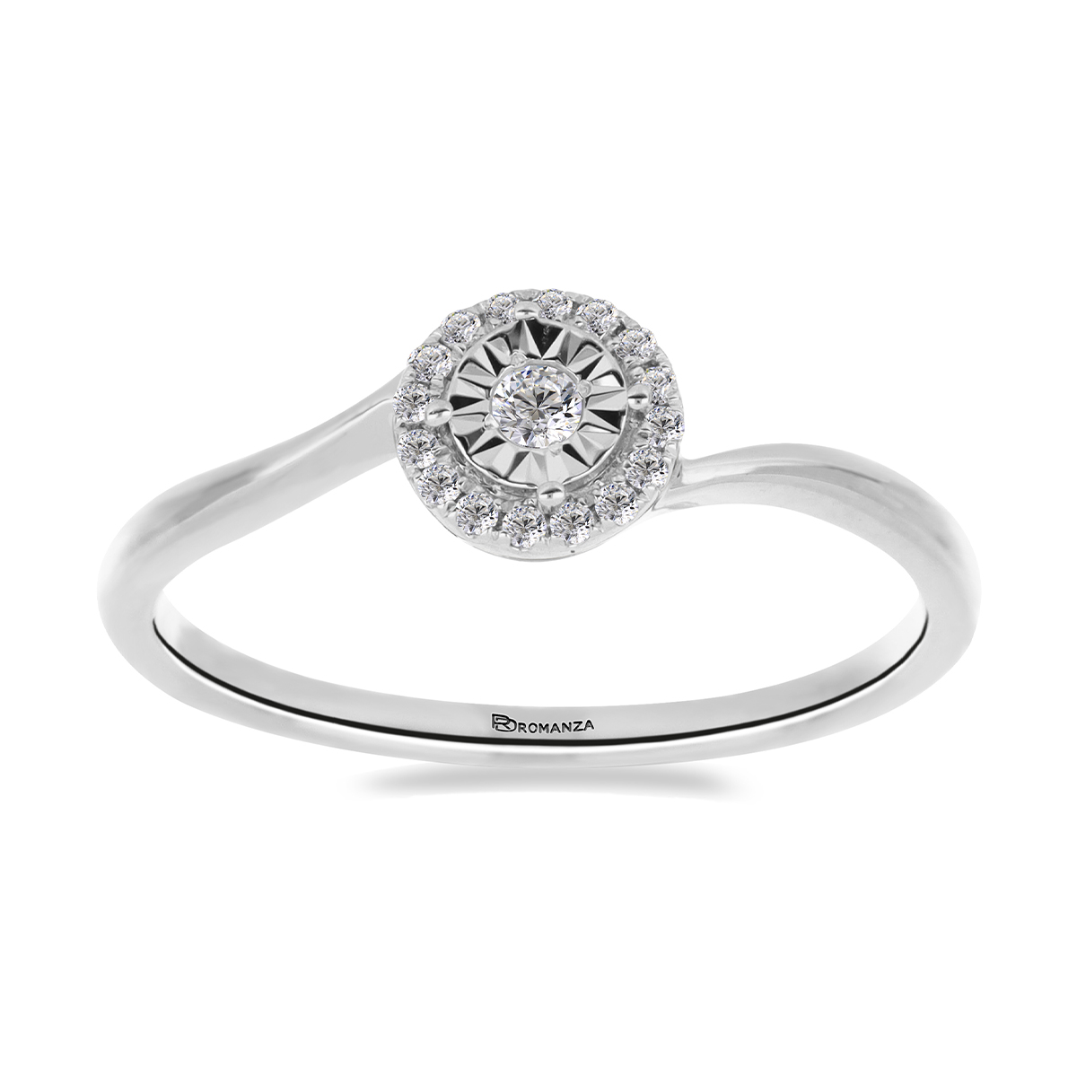 Anillo Solitario Ilusión con Centro 0.06 Quilates de Diamante en ORO BLANCO de 14 kt