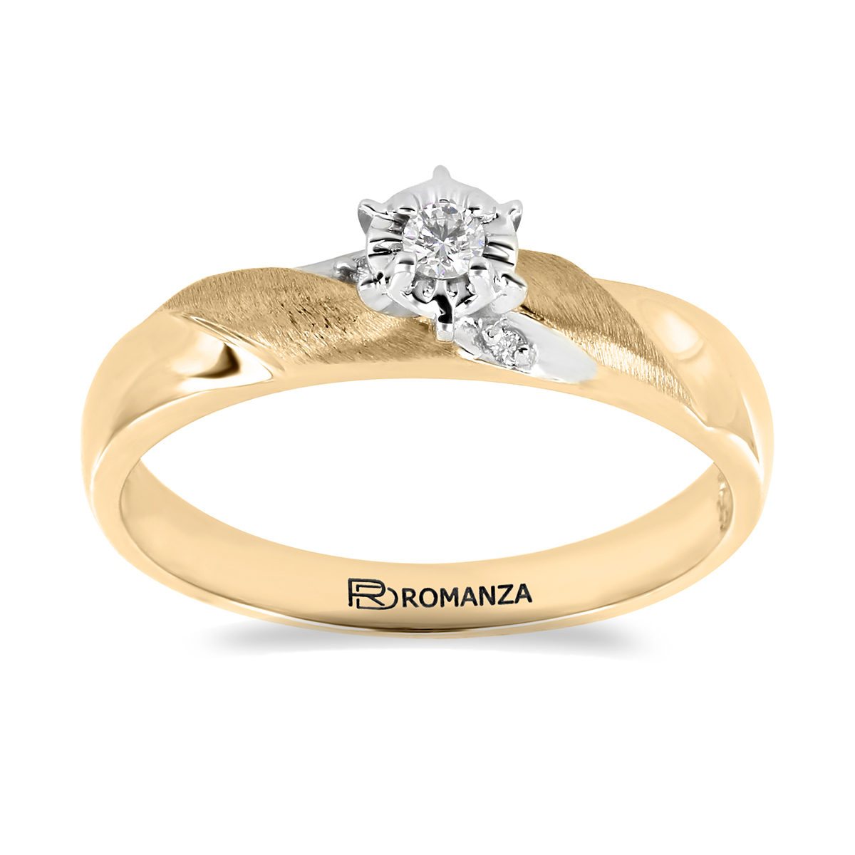 Anillo Solitario Ilusión con Centro 0.04 Quilates y Montadura 0.02 Quilates de Diamante en Oro Amarillo de 14 kt