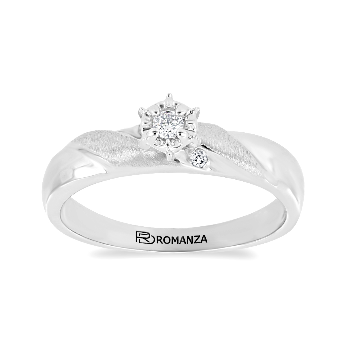 Anillo Solitario Ilusión con Centro 0.05 Quilates de Diamante en Oro Blanco de 14 kt