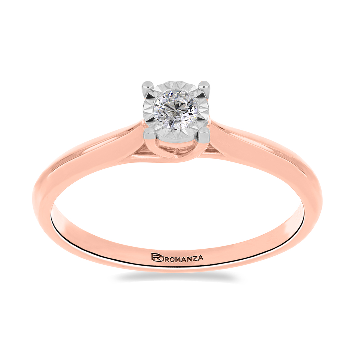 Anillo Solitario Ilusión con Centro 0.15 Quilates de Diamante en ORO ROSA de 14 kt