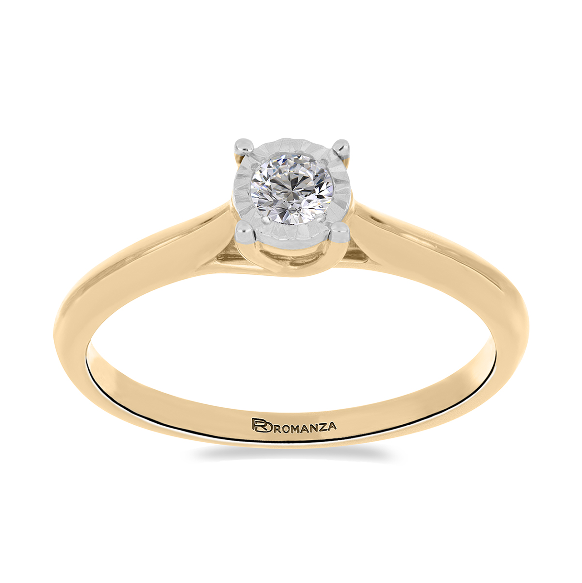 Anillo Solitario Ilusión con Centro 0.15 Quilates de Diamante en ORO AMARILLO de 14 kt