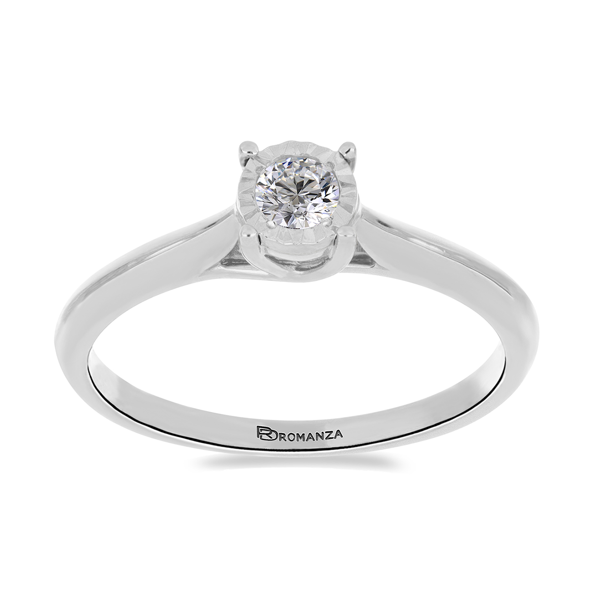 Anillo Solitario Ilusión con Centro 0.10 Quilates de Diamante en ORO BLANCO de 14 kt