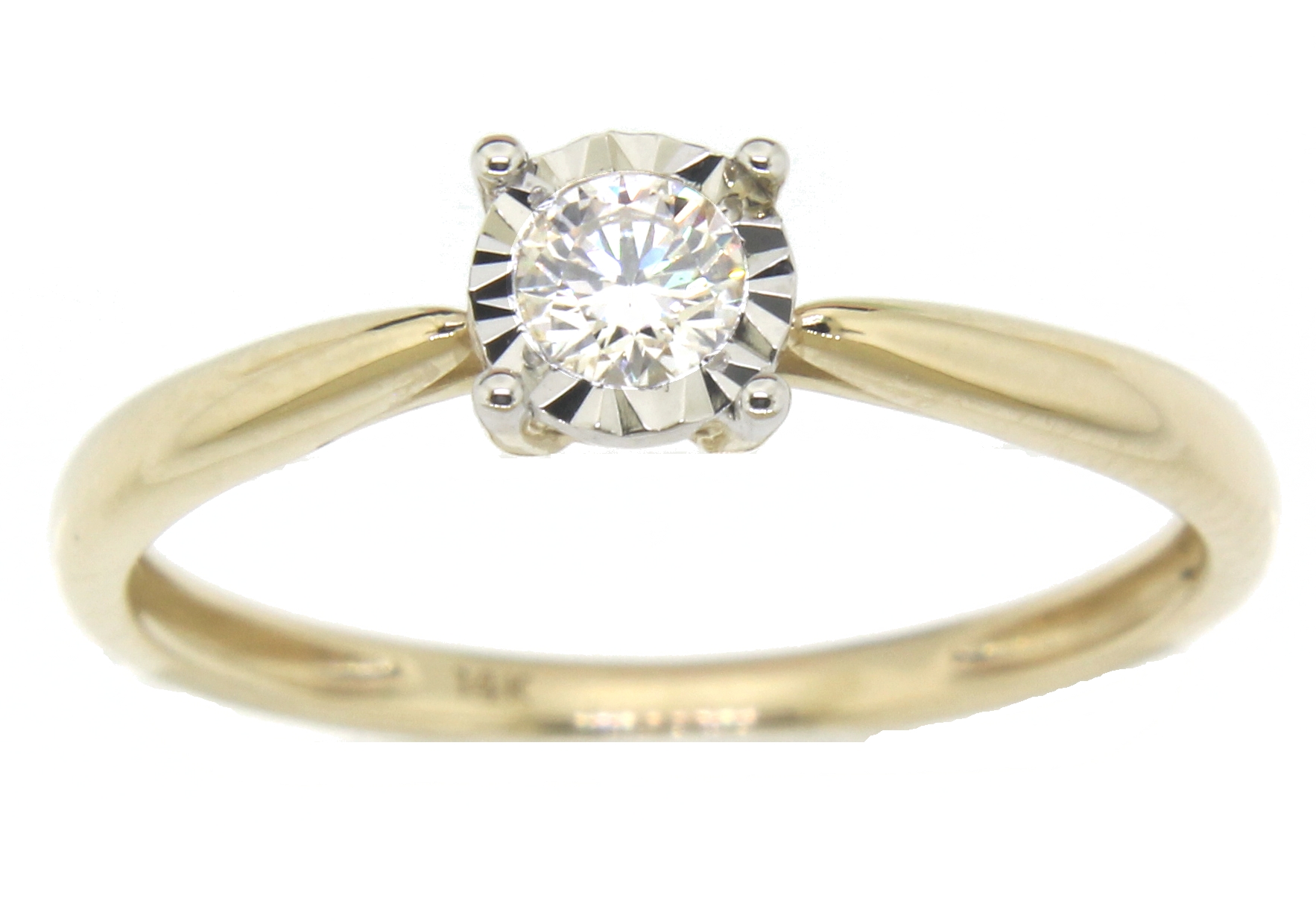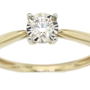 Anillo Solitario Ilusión con Centro 0.06 Quilates y Montadura 0.01 Quilates de Diamante en Oro Amarillo de 14 kt