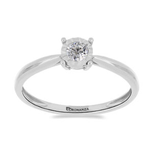 Anillo Solitario Ilusión con Centro 0.06 Quilates y Montadura 0.01 Quilates de Diamante en Oro Blanco de 14 kt