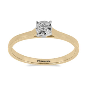 Anillo Solitario Ilusión con Centro 0.06 Quilates y Montadura 0.01 Quilates de Diamante en Oro Amarillo de 14 kt