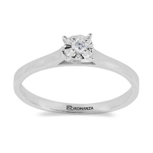 Anillo Solitario Ilusión con Centro 0.06 Quilates y Montadura 0.01 Quilates de Diamante en Oro Blanco de 14 kt