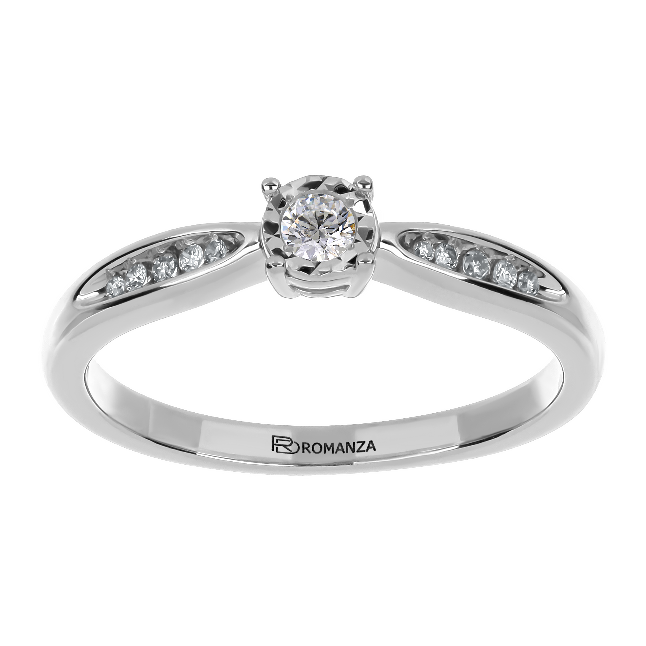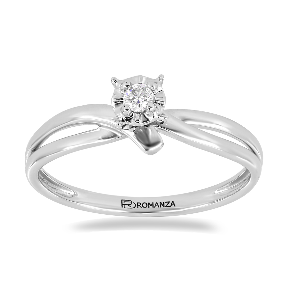Anillo Solitario Ilusión con Centro 0.06 Quilates de Diamante en Oro Blanco de 14 kt
