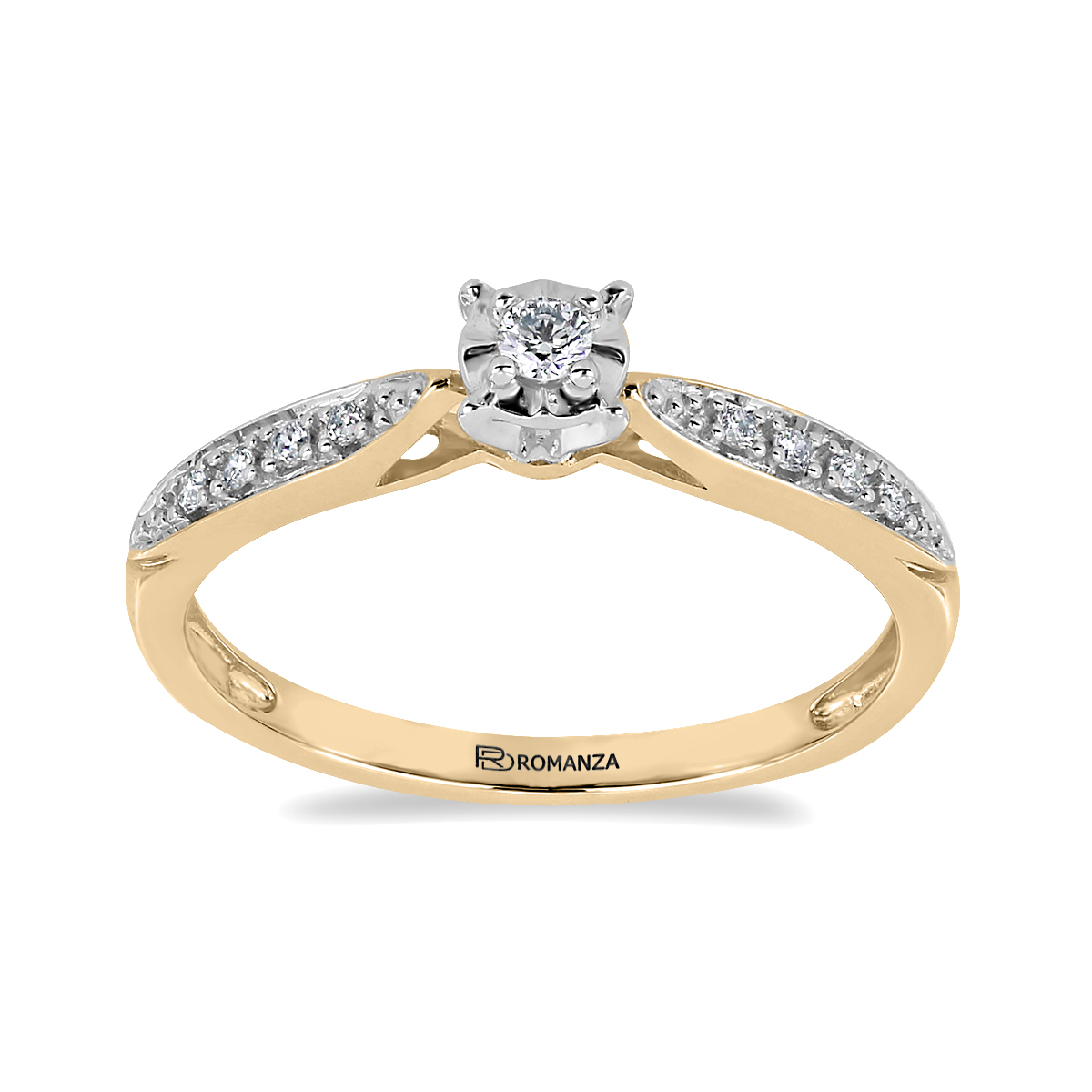 Anillo Solitario Ilusión con Montadura 0.09 Quilates de Diamante en Oro Amarillo de 14 kt