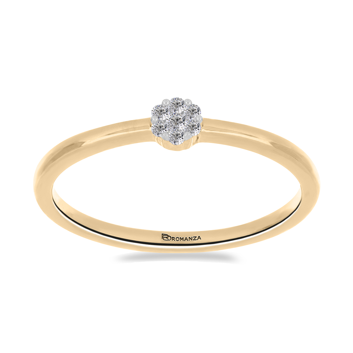 Anillo Solitario Roseta con Montadura 0.07 Quilates de Diamante en ORO AMARILLO de 14 kt