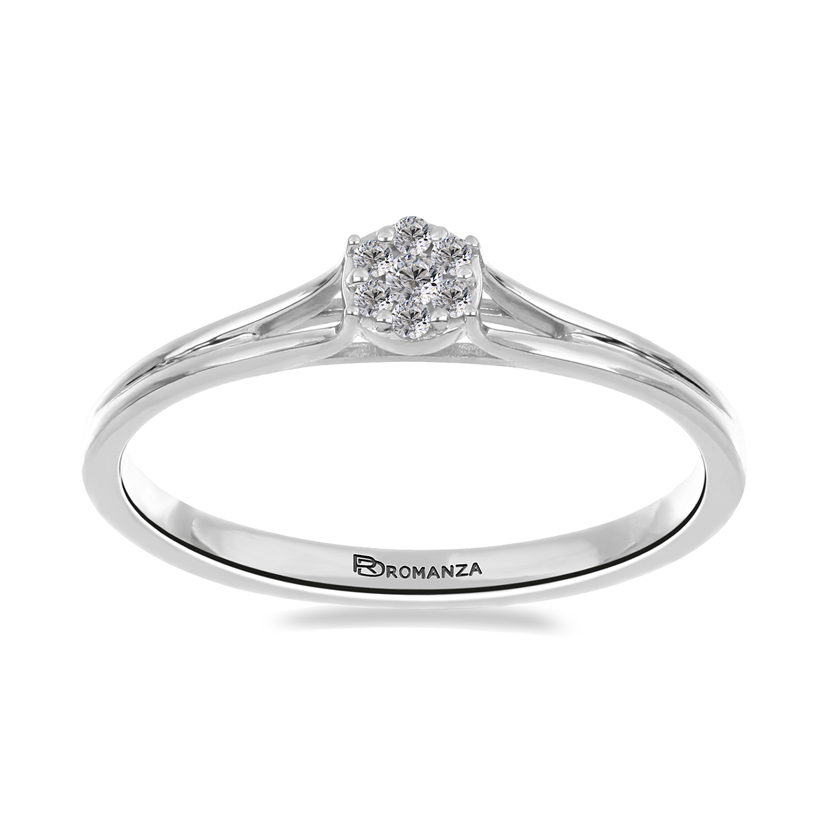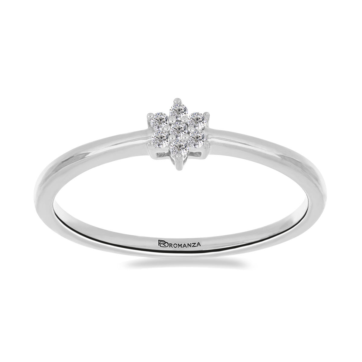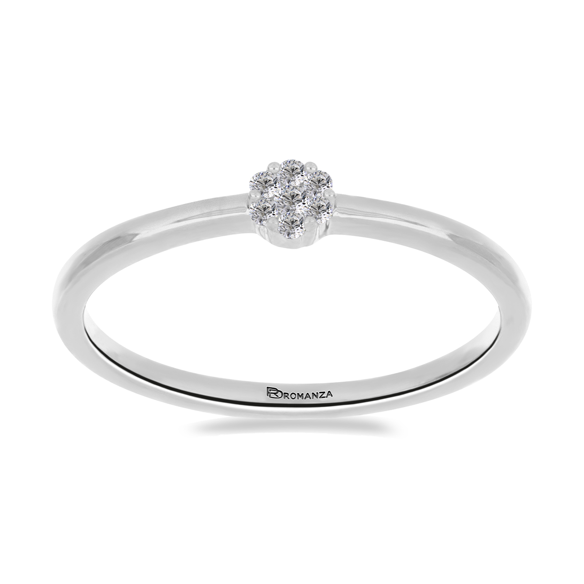 Anillo Solitario Roseta con Montadura 0.06 Quilates de Diamante en ORO BLANCO de 14 kt