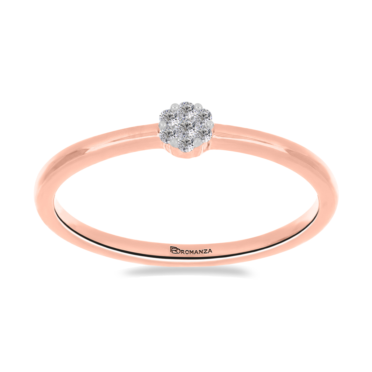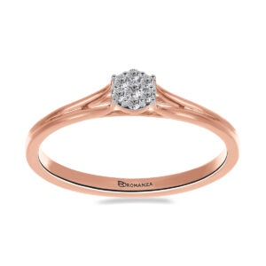 Anillo Solitario Roseta con Montadura 0.06 Quilates de Diamante en ORO ROSA de 14 kt