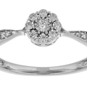 Anillo Solitario Roseta con Montadura 0.12 Quilates de Diamante en ORO BLANCO de 14 kt
