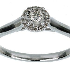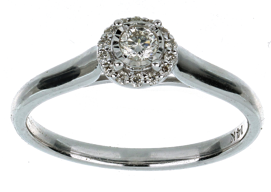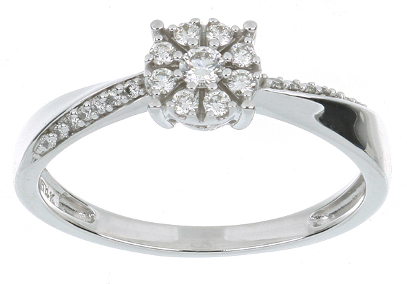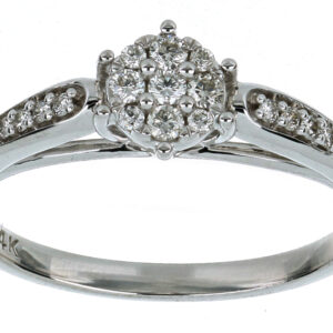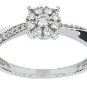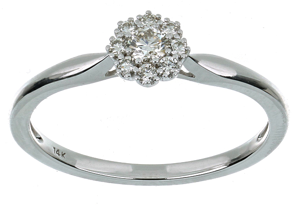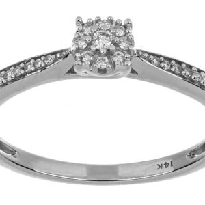 Anillo Solitario Roseta con Montadura 0.17 Quilates de Diamante en ORO BLANCO de 14 kt