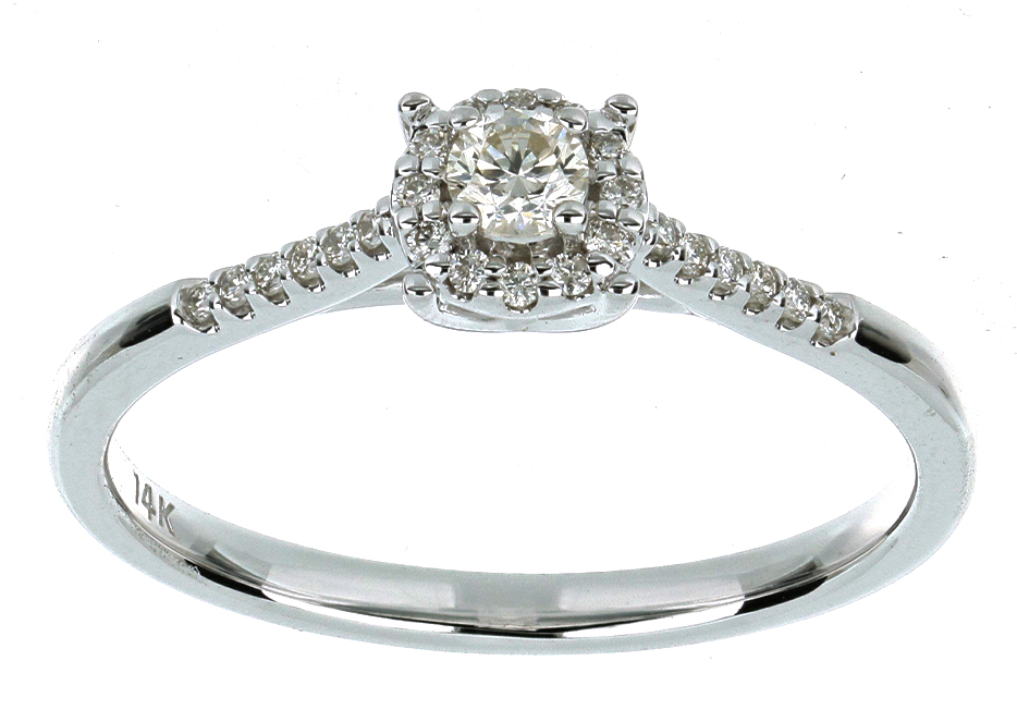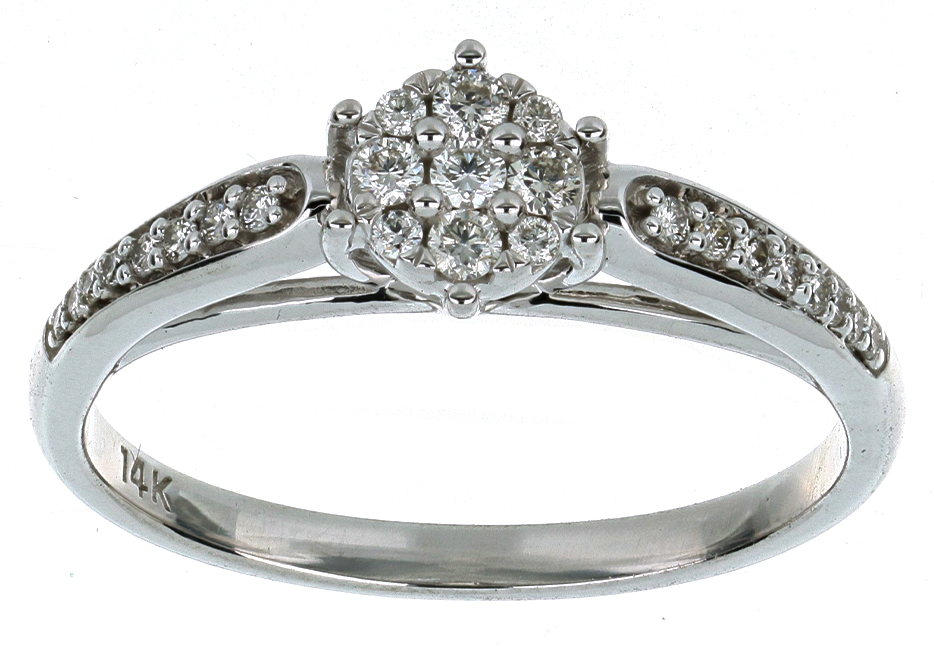 Anillo Solitario Roseta con Montadura 0.22 Quilates de Diamante en ORO BLANCO de 14 kt