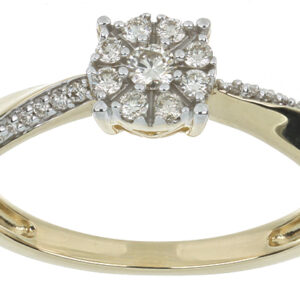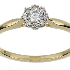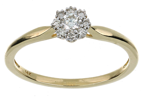 Anillo Solitario Roseta con Montadura 0.22 Quilates de Diamante en ORO AMARILLO de 14 kt