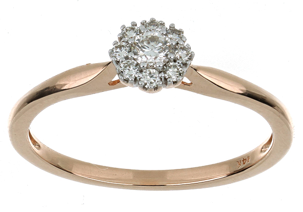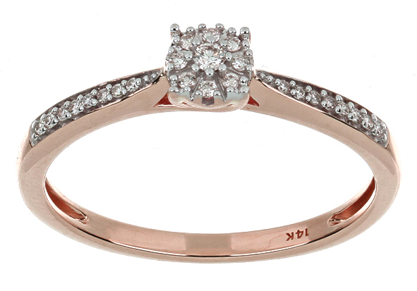 Anillo Solitario Roseta con Montadura 0.12 Quilates de Diamante en ORO ROSA de 14 kt