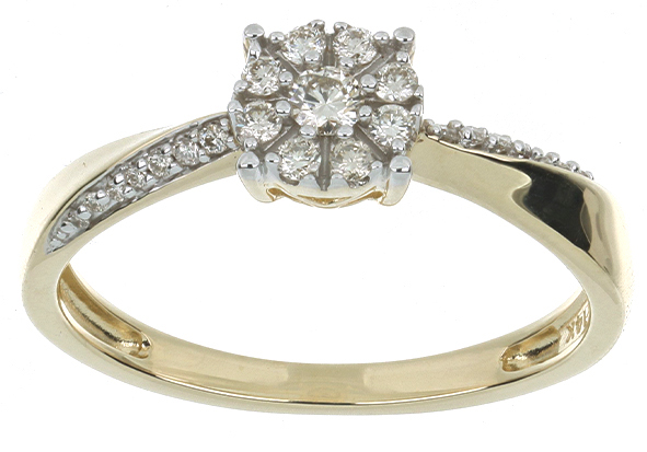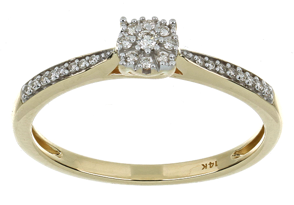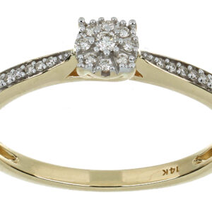 Anillo Solitario Roseta con Montadura 0.12 Quilates de Diamante en ORO AMARILLO de 14 kt