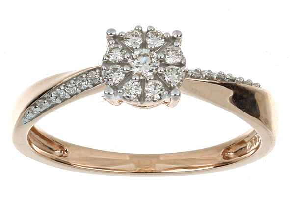 Anillo Solitario Roseta con Montadura 0.22 Quilates de Diamante en ORO ROSA de 14 kt