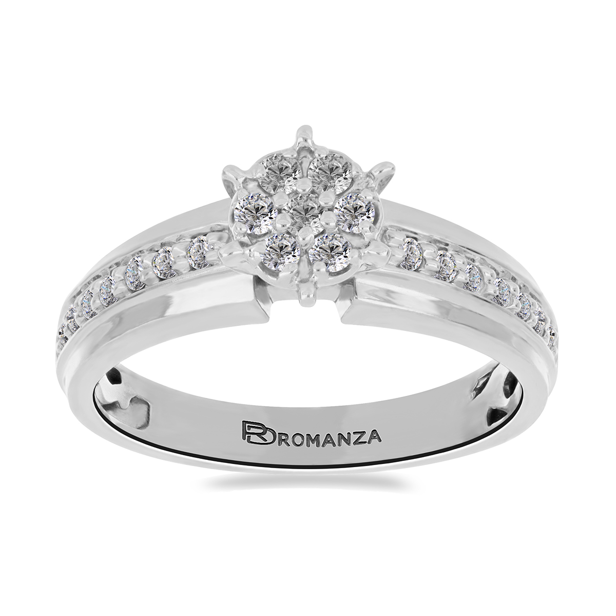 Anillo Solitario Roseta con Montadura 0.21 Quilates de Diamante en ORO BLANCO de 14 kt