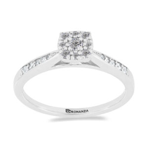 Anillo Solitario Roseta con Centro 0.14 Quilates y Montadura 0.14 Quilates de Diamante en Oro Blanco de 14 kt