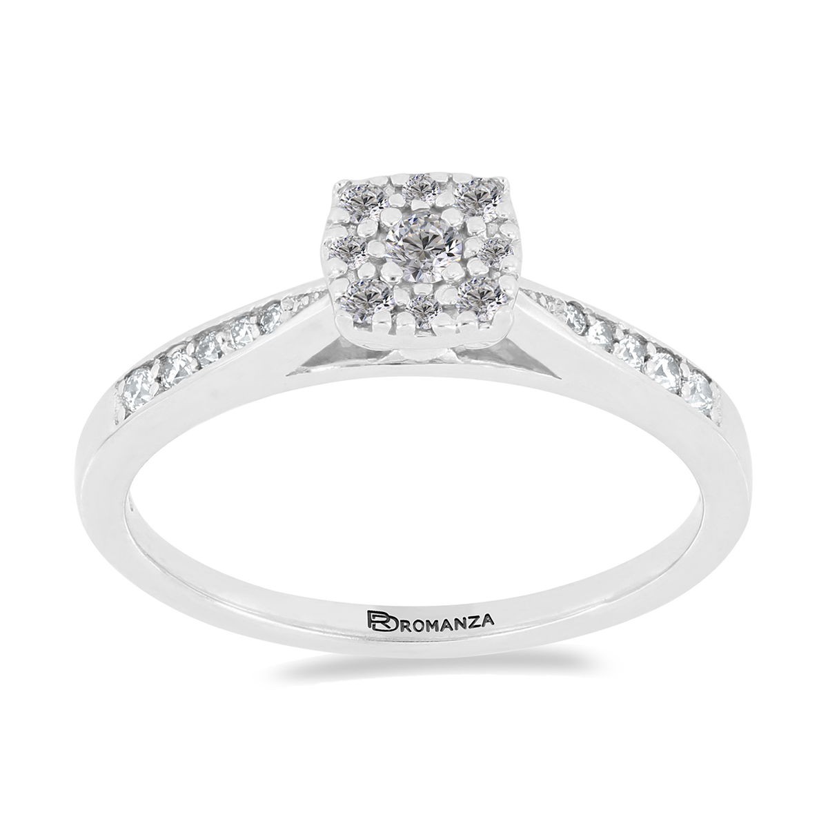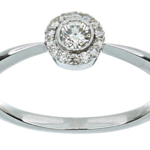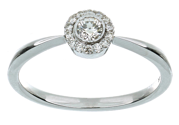 Anillo Solitario Roseta con Montadura 0.19 Quilates de Diamante en ORO BLANCO de 14 kt