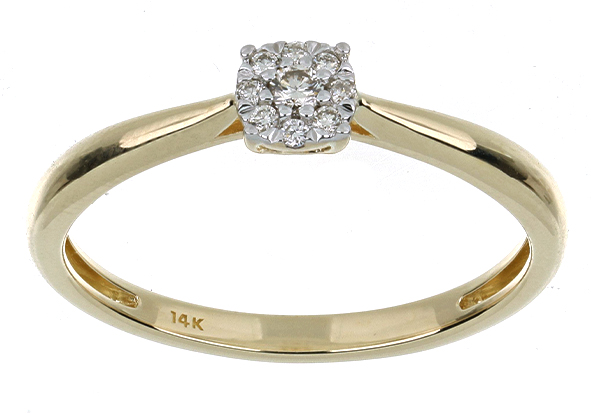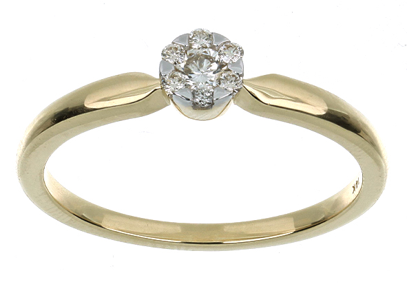 Anillo Solitario Roseta con Montadura 0.07 Quilates de Diamante en ORO AMARILLO de 14 kt