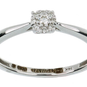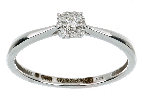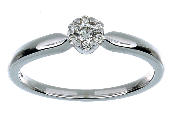 Anillo Solitario Roseta con Montadura 0.07 Quilates de Diamante en ORO BLANCO de 14 kt