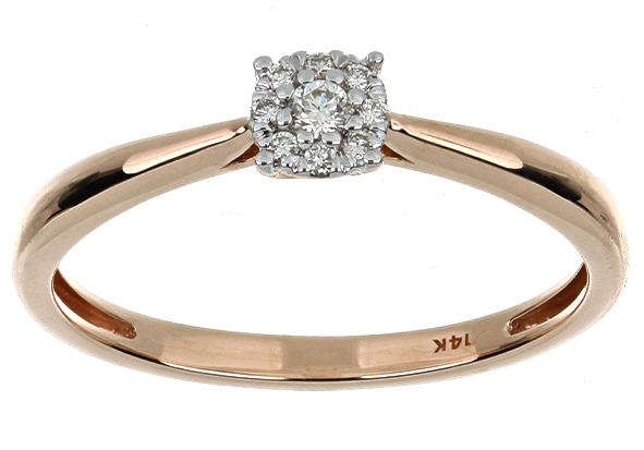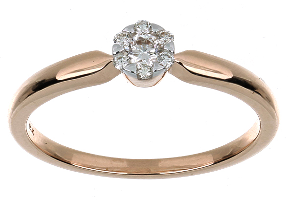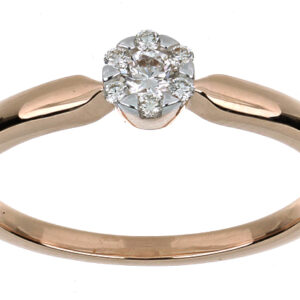 Anillo Solitario Roseta con Montadura 0.07 Quilates de Diamante en ORO ROSA de 14 kt