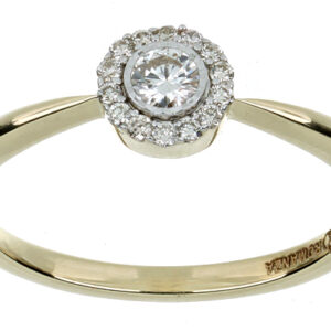 Anillo Solitario Roseta con Montadura 0.19 Quilates de Diamante en ORO AMARILLO de 14 kt