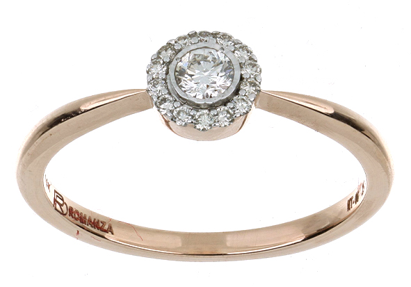 Anillo Solitario Roseta con Montadura 0.19 Quilates de Diamante en ORO ROSA de 14 kt