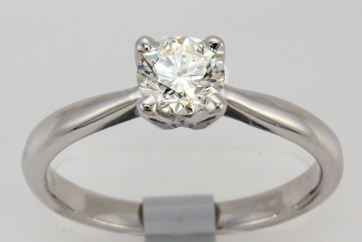 Anillo Solitario con Centro 0.55 Quilates de Diamante en Oro Blanco de 14 kt