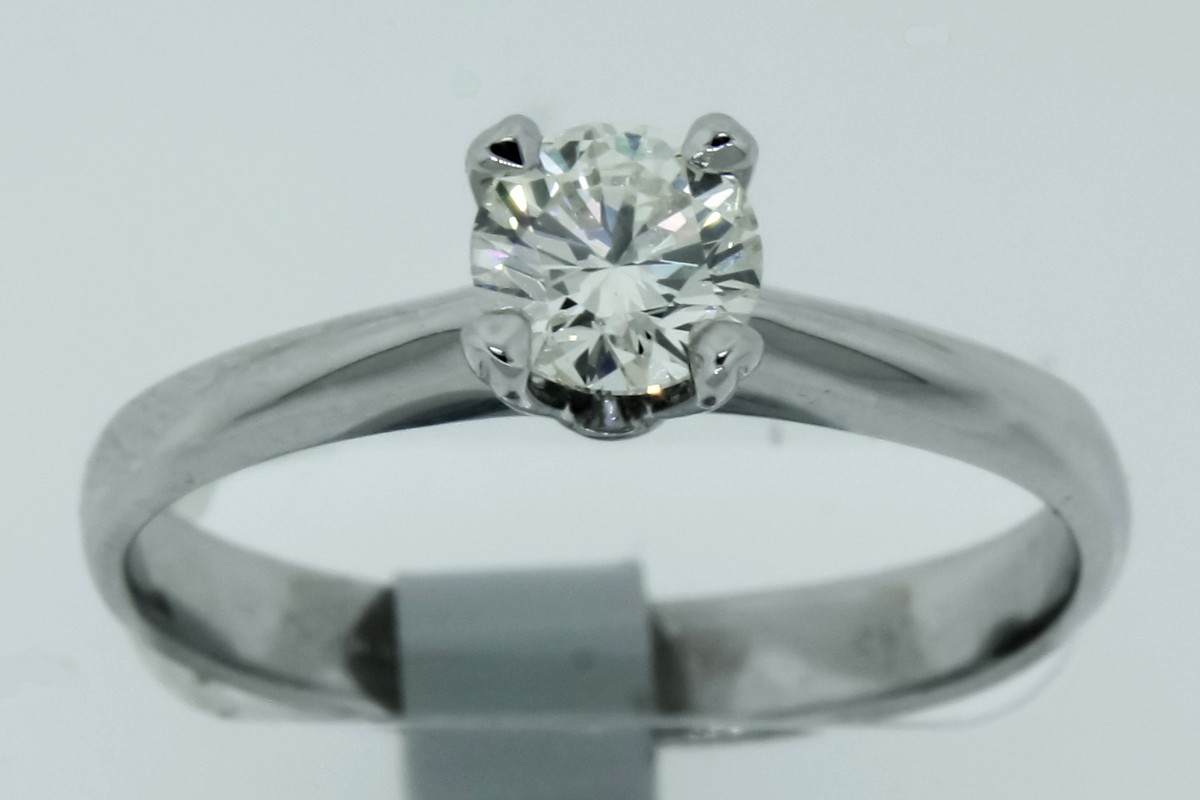 Anillo Solitario con Centro 0.45 Quilates de Diamante en Oro Blanco de 14 kt