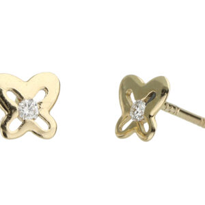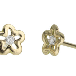 Aretes Bebé o Niña con Montadura 0.05 Quilates de Diamante en Oro Amarillo de 14 kt
