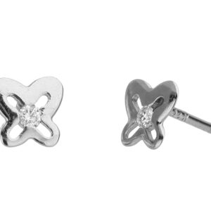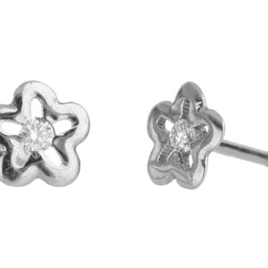 Aretes Bebé o Niña con Montadura 0.08 Quilates de Diamante en Oro Blanco de 14 kt