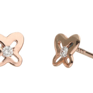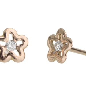 Aretes Bebé o Niña con Montadura 0.03 Quilates de Diamante en ORO ROSA de 14 kt