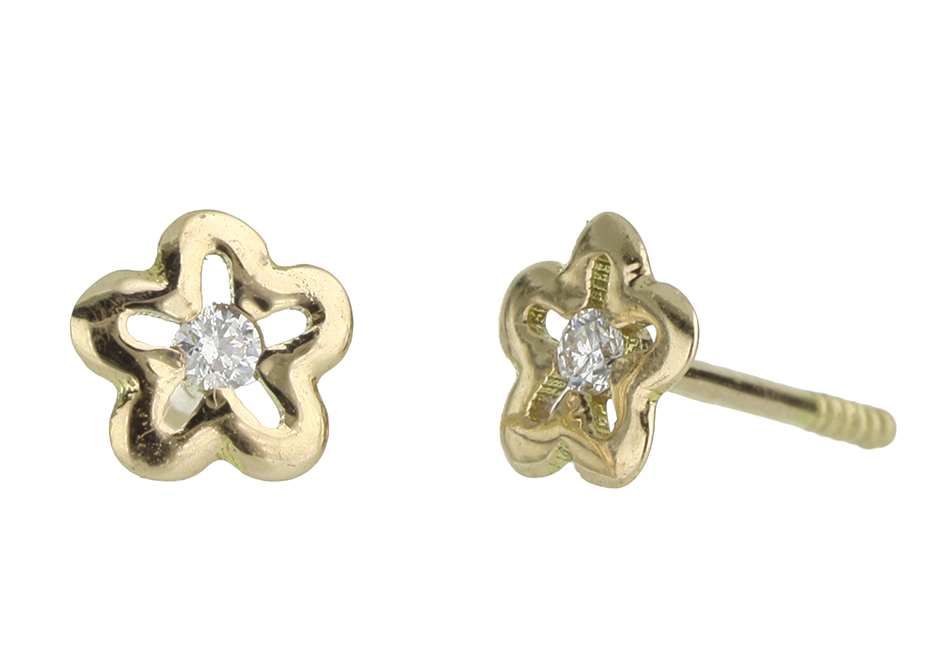 Aretes Bebé o Niña con Montadura 0.05 Quilates de Diamante en Oro Amarillo de 14 kt