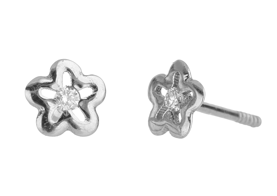 Aretes Bebé o Niña con Montadura 0.08 Quilates de Diamante en Oro Blanco de 14 kt