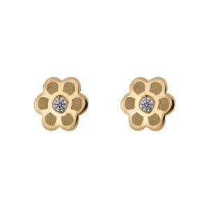 Aretes Bebé o Niña con Montadura 0.03 Quilates de Diamante en Oro Amarillo de 14 kt