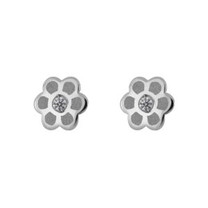 Aretes Bebé o Niña con Montadura 0.02 Quilates de Diamante en Oro Blanco de 14 kt