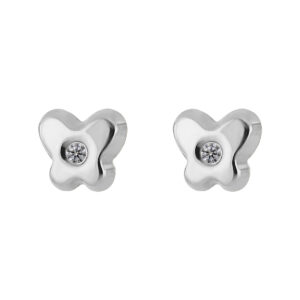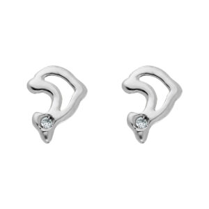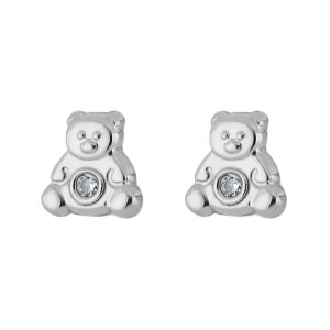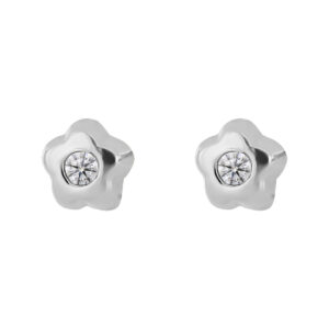 Aretes Bebé o Niña con Montadura 0.03 Quilates de Diamante en Oro Blanco de 14 kt