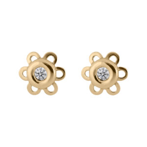Aretes Bebé o Niña con Montadura 0.03 Quilates de Diamante en Oro Amarillo de 14 kt
