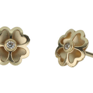 Aretes Bebé o Niña con Montadura 0.03 Quilates de Diamante en ORO AMARILLO de 14 kt