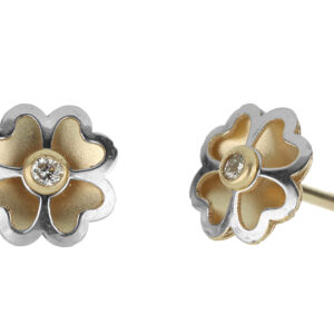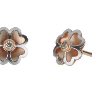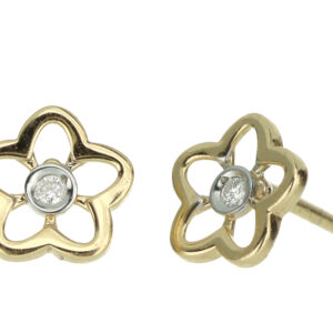 Aretes Bebé o Niña con Montadura 0.02 Quilates de Diamante en ORO COMBINADO de 14 kt