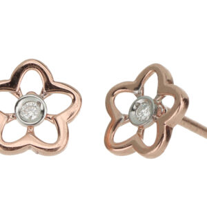Aretes Bebé o Niña con Montadura 0.03 Quilates de Diamante en ORO ROSA de 14 kt