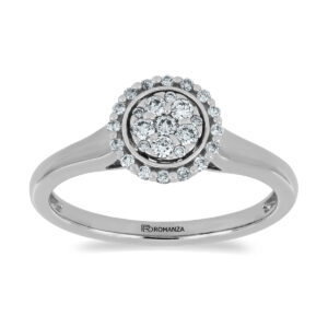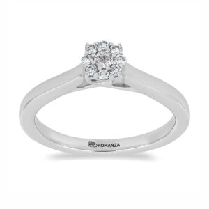 Anillo Solitario Roseta con Montadura 0.15 Quilates de Diamante en Oro Blanco de 14 kt