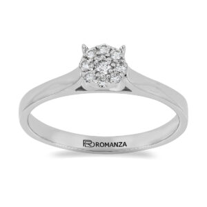 Anillo Solitario Roseta con Montadura 0.12 Quilates de Diamante en Oro Blanco de 14 kt