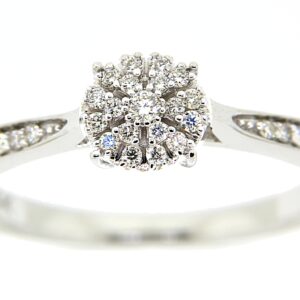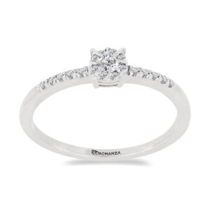 Anillo Solitario Roseta con Montadura 0.17 Quilates de Diamante en Oro Blanco de 14 kt